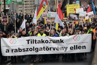 Des milliers de personnes manifestent en Hongrie contre une loi Orban imposant aux travailleurs 400 heures supplémentaires par an. La confédération syndicale hongroise MASZSZ est très active dans cette mobilisation. Le site de soutien syndical Labour Start lance une pétition.